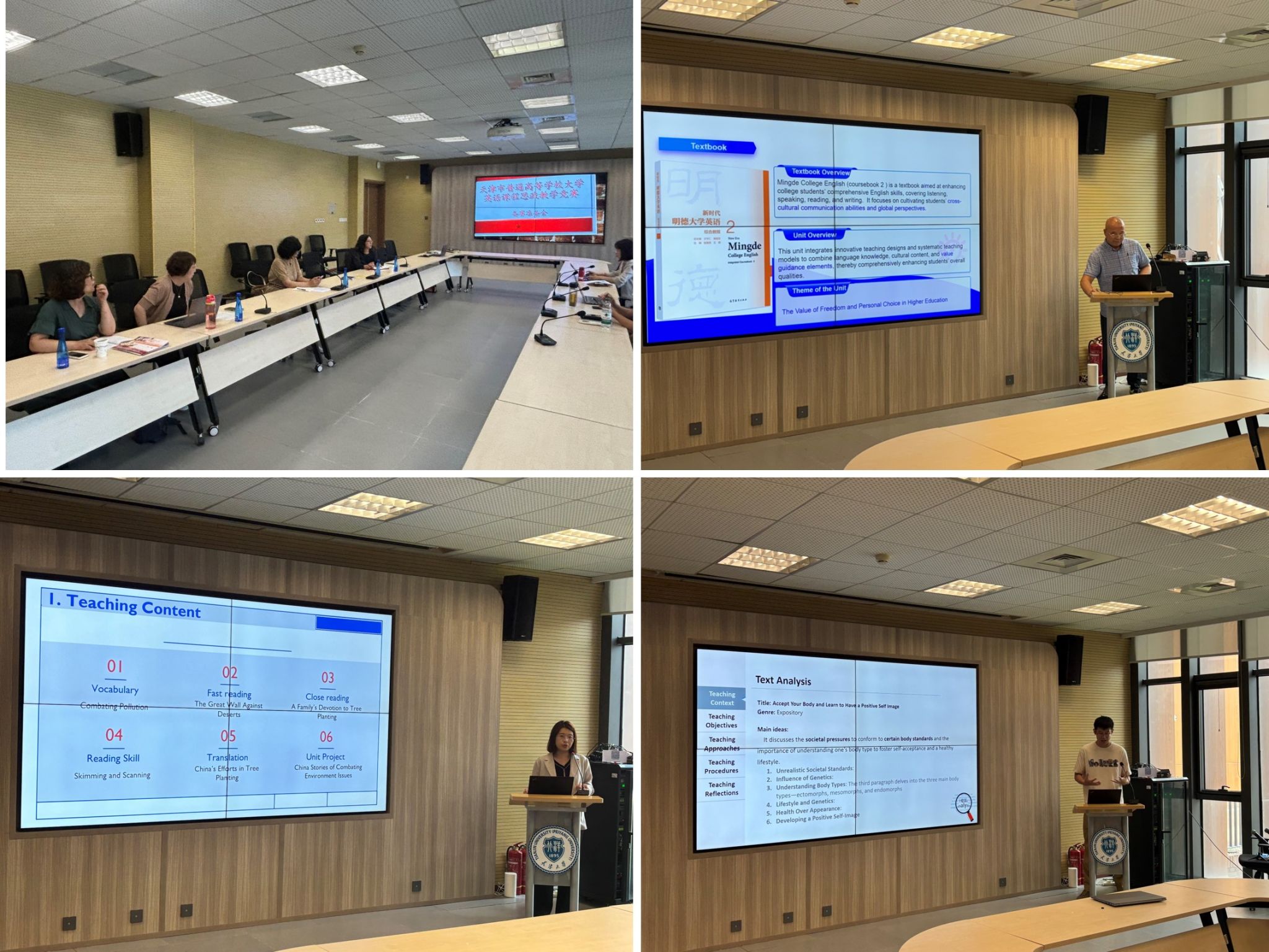 本次竞赛由天津市教育委员会主办,天津大学承办,高等教育出版社协办,分初赛、复赛、决赛三级赛制。初赛阶段,学院大学英语教师积极组队参与,认真备赛并制作参赛作品,最终学院选送了三个教师团队的参赛作品参加复赛。复赛结束后,三个教师团队成功晋级。晋级决赛后,学院高度重视,先后组织了两轮决赛模拟演练。各教学团队选派1-2名选手在赛前现场抽取比赛素材,根据所抽取素材进行课程思政教学设计并现场制作展示PPT,准备时间90分钟。选手基于素材对课程思政教学设计进行说课展示,其中包括教学设计阐述10分钟,现场问答5分钟。各队选手在模拟演练过程中,取长补短,不断优化教学设计并进行备赛反思与总结。每次演练结束后,各队选手认真回顾说课过程,分析存在的问题与不足并寻求改进的方法,教学能力和水平得到了显著提升。