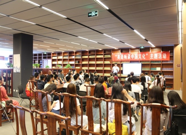 2019年5月17日,文学院大学英语教学一部在郑东图书馆日新书斋成功举办了“英语畅谈中国文化” 主题活动。本次活动由大学英语教学一部党支部和系部共同主办,大学英语教学一部的全体党员及群众教师骨干、2017级文学院翻译硕士党支部党员、2018级非英语专业部分本科生共同参加了此次活动。党员及非党员教师、学生共聚日新书斋,畅谈中国文化,畅聊英语教育。此次活动以其创新性、知识性、趣味性,规模之大、参与人数之多创下大学英语教学一部主题活动的先河,具有多重意义:拉开了大学英语“课程思政”建设的序幕;将党建活动扩大到非党员师生;探索了师生沟通交流的新形式。