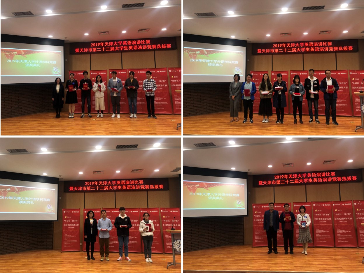 大赛为同学们搭建了一个英语演讲展示的舞台,激发了大家学习英语的兴趣,进一步推动了天津大学英语教学改革的深入开展,提高了当代大学生的英语综合应用能力。本次比赛决出了特等奖2名、一等奖4名、二等奖6名、三等奖8名。来自外国语言与文学学院的吴晨钰、智能与计算学部的胡轶然等6位同学斩获佳绩,将代表天津大学参加天津市第二十二届大学生英语演讲竞赛暨2019年“外研社?国才杯”全国英语演讲大赛天津赛区复赛。
