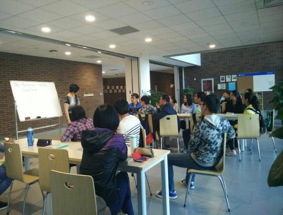 “相约四点半,师生面对面”系列文化活动受到师生的广泛关注,提升了我校天的人文氛围。在上周文学院第一期英语角活动中,师生间随和的交流、地道纯正的英语给人留下了深刻的印象。4月26日下午,第二期英语角如期而至,来自澳大利亚的外教Norma与众多英语爱好者相聚在第33教学楼文学院二层共享空间,以“The Australian Larrikin—the character of the people”为主题举行了分享交流会。