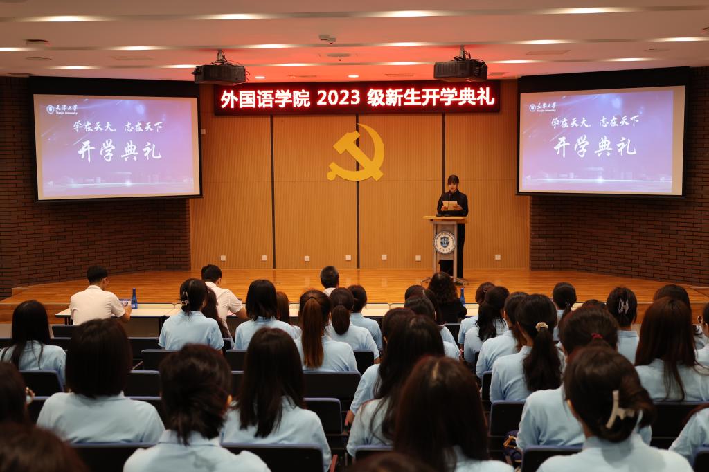 盛夏未央,初秋登场,美丽的春晖园又一次迎来了朝气蓬勃的新生。9月8日下午,外国语学院2023级新生开学典礼在33教学楼160报告厅顺利举行。所有院领导出席本次典礼,典礼由团委书记高羚主持。