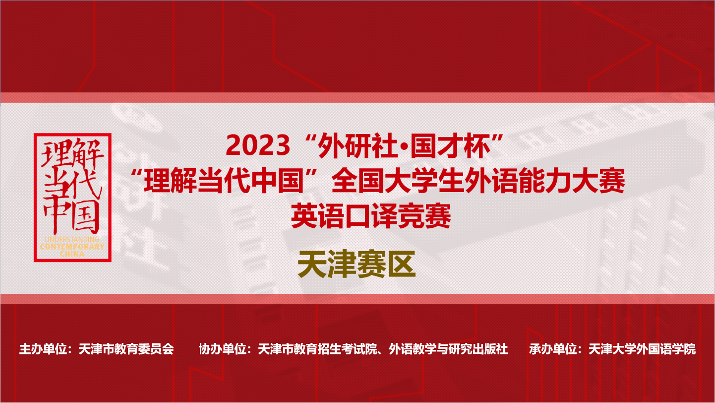 上一条:2023“外研社·国才杯”“理解当代中国”全国大学生外语能力大赛英语写作和阅读天津赛区竞赛在我校成功举办 下一条:2023“外研社·国才杯”“理解当代中国”全国大学生外语能力大赛英语翻译(笔译)天津赛区竞赛在我校成功举办