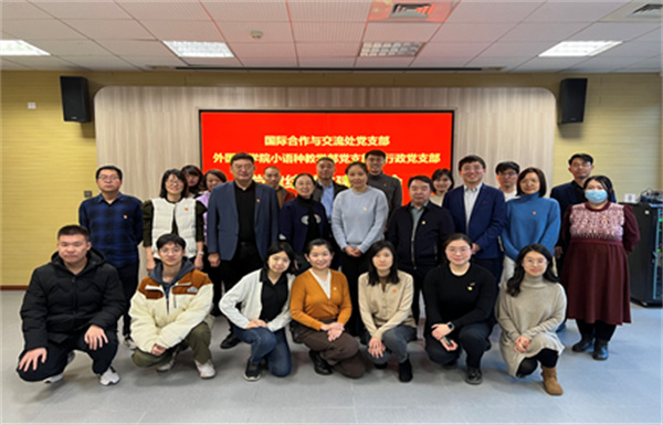 为深入学习宣传贯彻党的二十大精神和习近平总书记关于外国语学院建设和新时代外语人才培养的重要指示批示精神,增进学院和机关部门沟通交流与合作, 1月11日下午,天津大学外国语学院小语种教学部党支部、行政党支部和国际合作与交流处党支部开展交流共建活动。外国语学院领导张文礼、王立松、刘家骥,国际合作与交流处副处长魏有香、胡清华,共建支部全体党员以及学生代表参加本次活动。