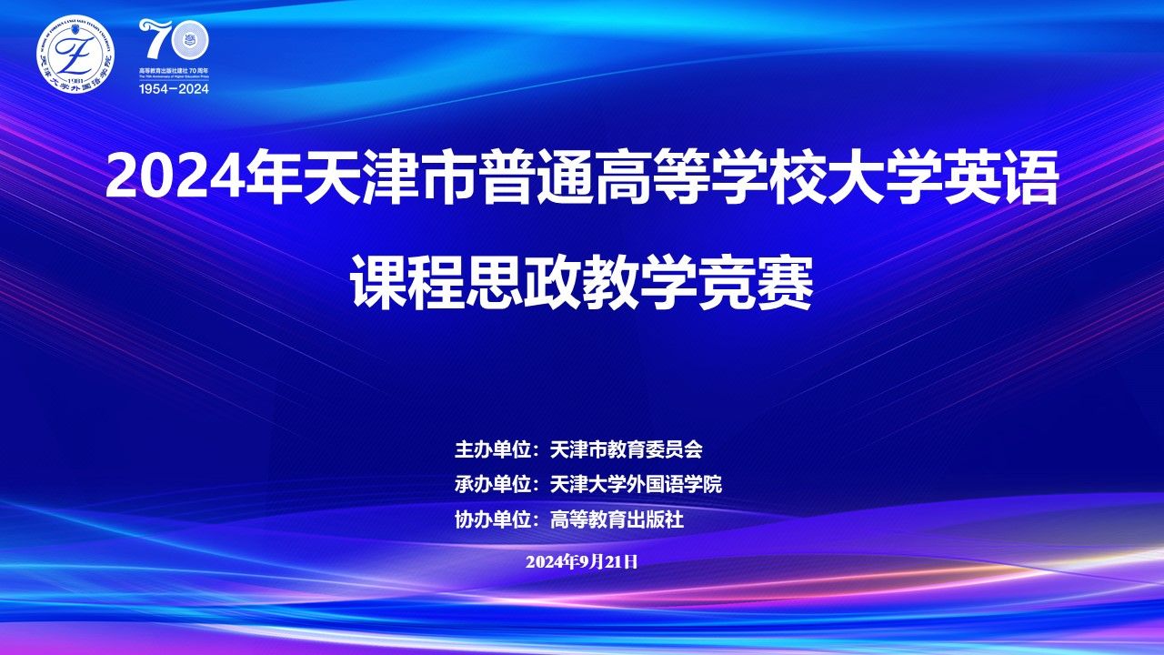 2024年9月21日,一场汇聚了天津市众多高校英语教育精英的盛会——天津市普通高等学校大学英语课程思政教学竞赛决赛在天津大学北洋园校区圆满落下帷幕。