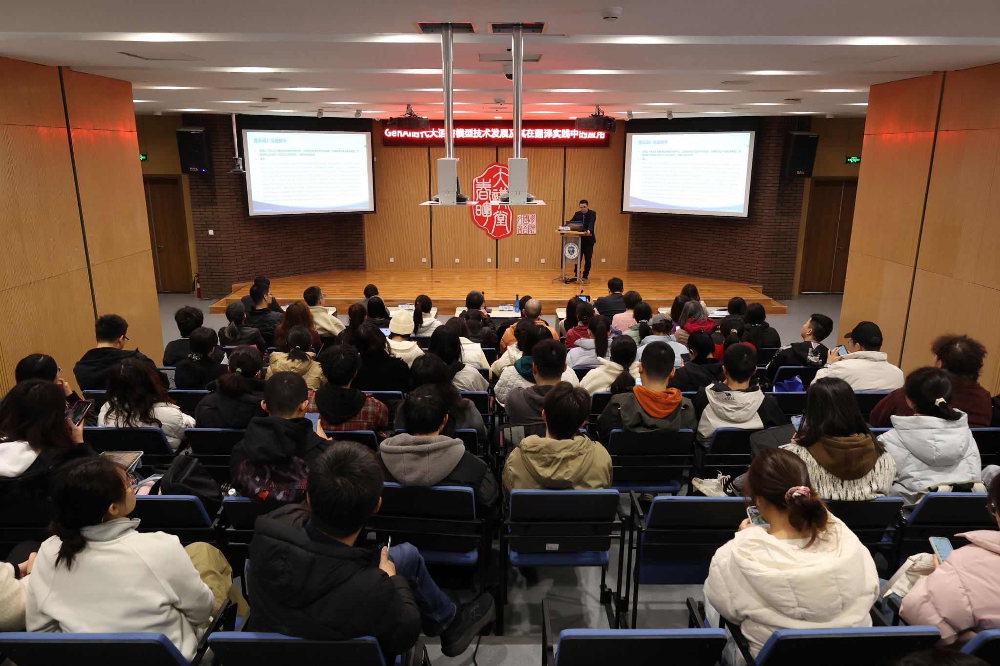 3月8日上午,北京外国语大学王华树教授做客天津大学外国语学院“春晖大讲堂”,应邀在160报告厅作题为“GenAI时代大语言模型技术发展及其在翻译实践中的应用”的讲座,外国语学院党委书记张文礼、院长王立松、副院长刘家骥参加了本次讲座。参加本次讲座的除了外国语学院师生,还吸引了包括机械学院、精仪学院、建工学院、化工学院、环境学院、理学院、智算学部等10余个学院(学部)的师生。