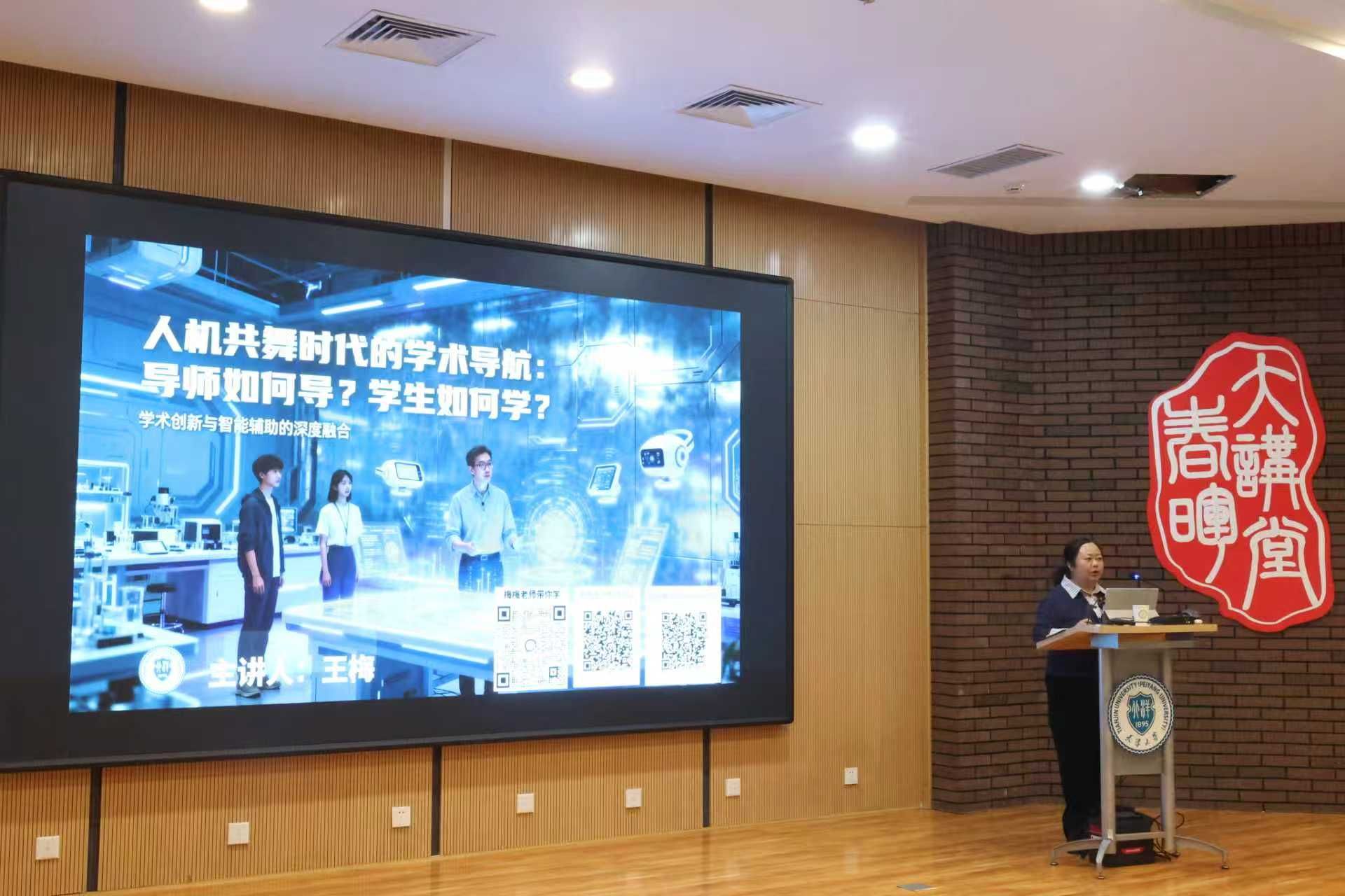 第四场活动聚焦新型导学关系与心理支持,突出数字化赋能。12月19日,学院举办“新型导学关系培训”专题讲座,邀请教育学院王梅老师作报告,以“人机共舞时代的学术导航:导师如何导?学生如何学?”为题,从教育心理学视角解析导学关系中的沟通心理、信任建立与冲突调适,并提出AI时代导学角色转型路径:学生端从“搬运工”转向“建筑师”,导师端从“监考官”升级为“策展人”。讲座结合情景案例与工具演示,帮助导师提升识别学生心理需求与压力信号的能力,形成理解型、支持型的指导方式。