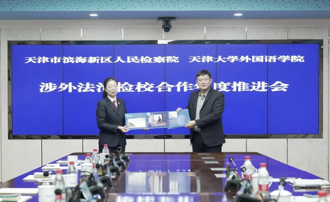 1月26日上午,天津大学外国语学院与滨海新区人民检察院涉外法治检校合作年度推进会在滨海新区人民检察院举行。滨海新区人民检察院党组书记、检察长张云琦,党组副书记、副检察长曹纪元及相关部门负责人参加会议,天津大学外国语学院院长王立松率队参加,双方就深化涉外法治领域a合作、年度成果总结、谋划未来方向展开深入交流。