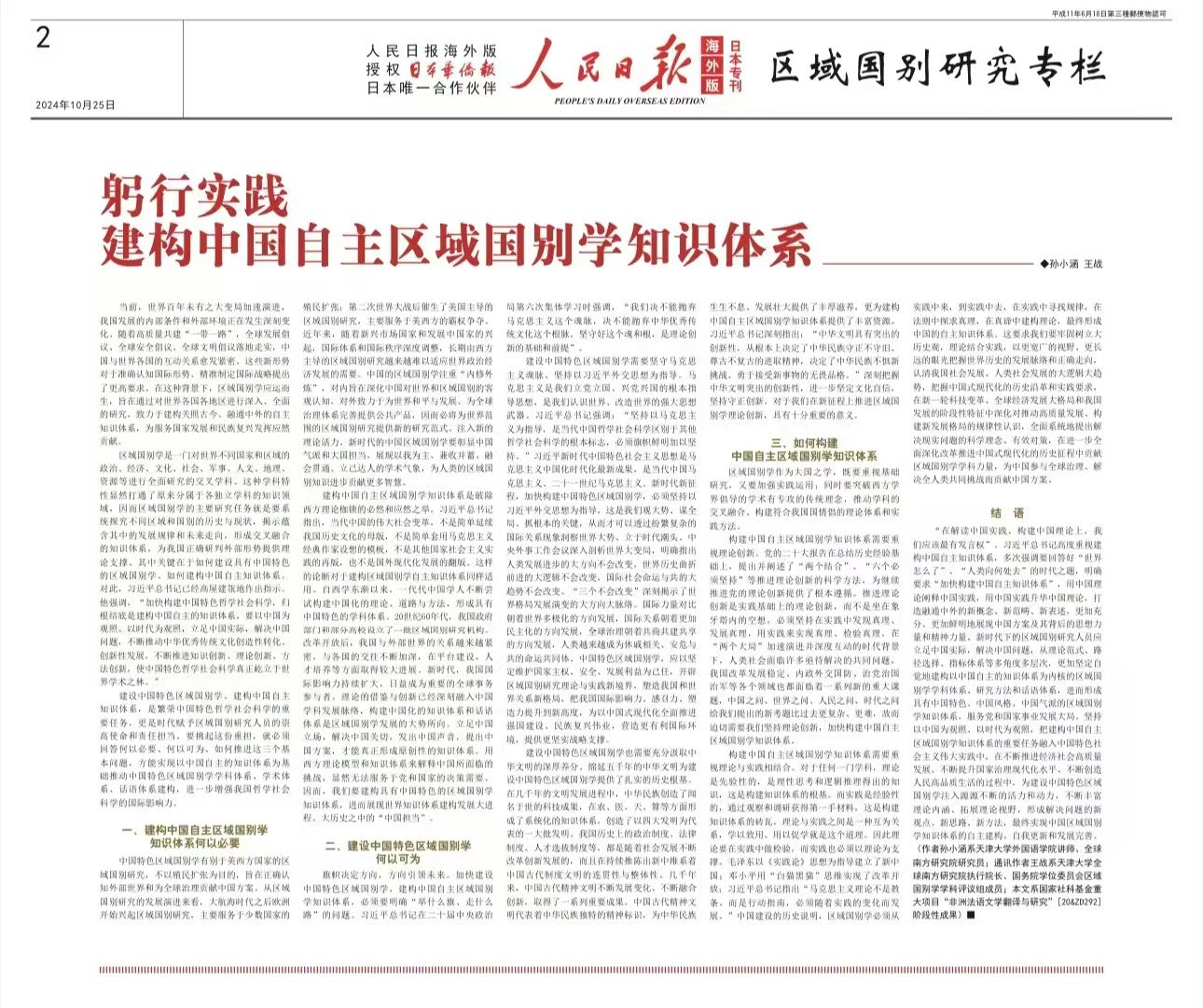 Recently, Sun Xiaohan and Professor Wang Zhan, educators from the School of Foreign Languages, published a theoretical article titled Practicing with Diligence and Dedication and Constructing China’ s Independent Knowledge System of Country and Area Studies in the Overseas Edition of People’s Daily.