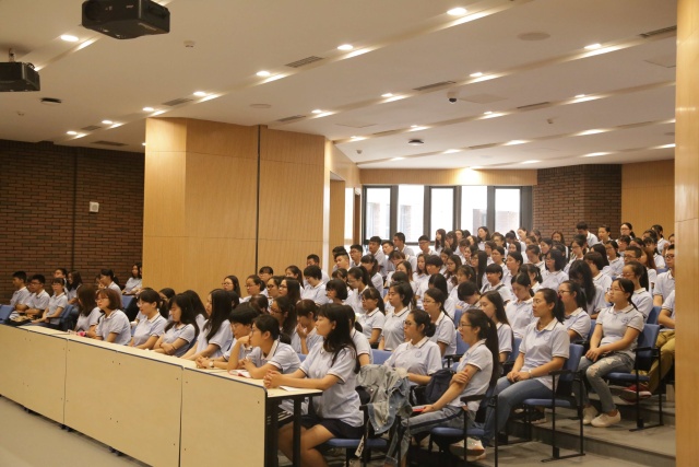 李旭为开学典礼致辞,他告诉同学们在大学中应该先做人,再读书。首先要做一个对自己、对家庭、对社会都有益的人。院长讲了为人处世的九字哲学,即讲诚信、守规则、负责任。他告诫学生要多读书、读好书、读闲书,利用好课余时间,广泛阅读,博采众长,以读书的方式熏陶并丰富自己。他对大家寄予厚望,希望同学们在大学期间可以培养自由之思想、独立之人格、创新之精神,毕业后可以去改造社会,而不被社会所改造。