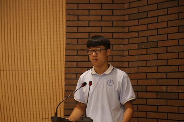 韩镜宇代表新生发言,初来乍到的他在感受着新鲜的同时也很快融入这个温暖的大家庭,他表示在未来的大学时光中会把握青春时光,努力学习,并讲了自己对于未来的期许,在天大充实自我,践行天大精神。