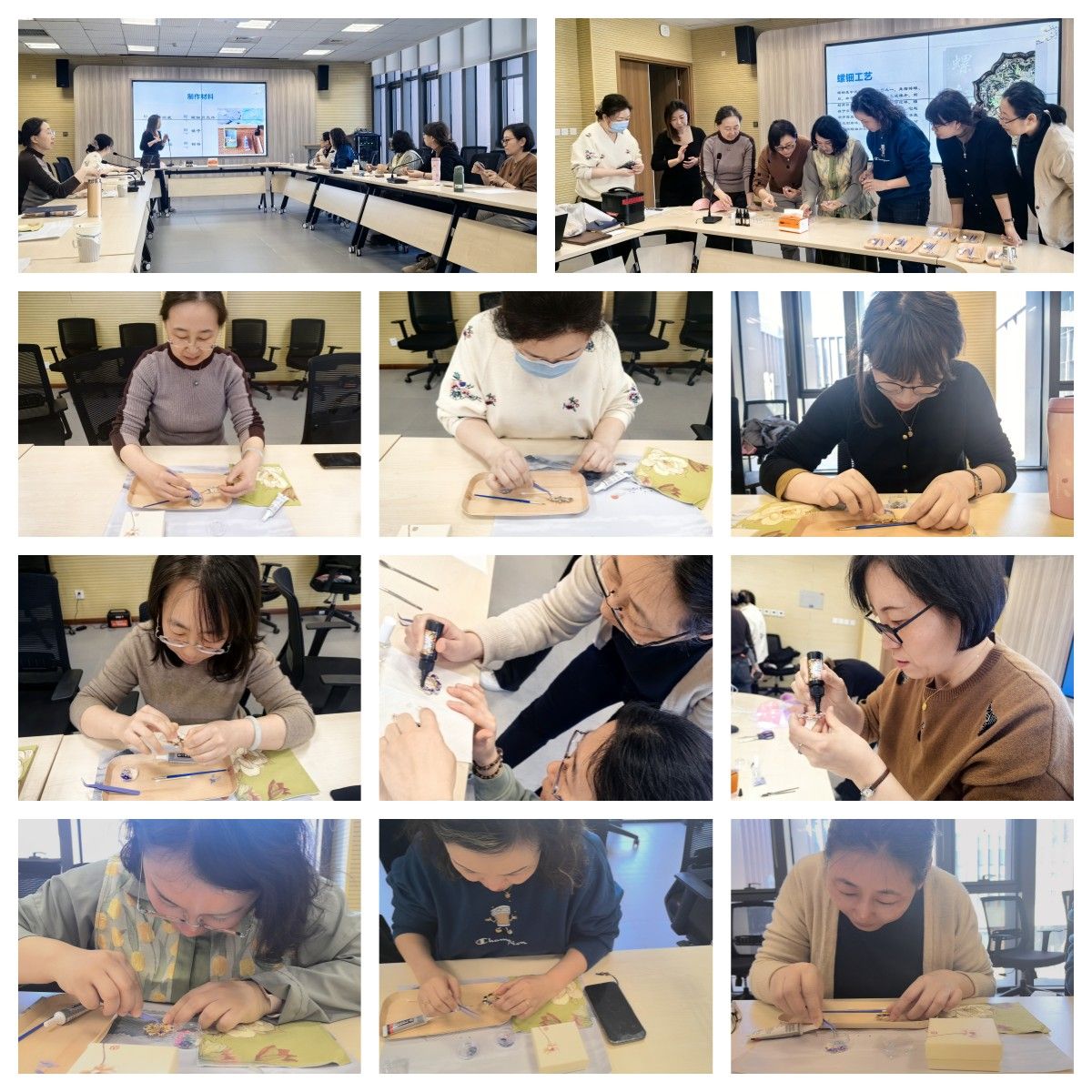在活动现场,女教职工们在专业导师的指导下,认真学习了螺钿工艺的制作技巧,亲手挑选螺壳和海贝,小心翼翼地磨制、镶嵌,最终制作出一个个精美的螺钿胸针。这不仅是一次手工艺的体验,更是一次对中国传统文化的深度感知与传承。