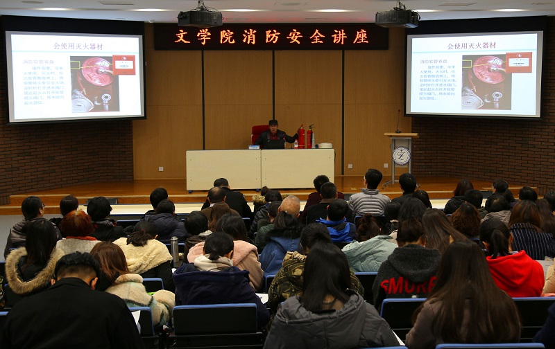 讲座前,文学院副院长王立松表示,全院师生要进一步强化安全意识,认真学习消防安全知识,及时排查并处理好各类安全隐患,用实际行动维护校园消防安全。
