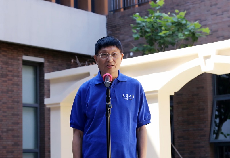 李旭在致辞中首先感谢了家俊书记和校友们对学院工作的支持与帮助。他介绍说,2015年天大双甲子校庆之际,师资班校友们回访母校,关心学校和英语学科的发展;2016年校友们向学院捐赠了夏季女神雕像,他们的“拳拳赤子心、浓浓爱校情”也感染者每个人;2017年校友们捐资600万成立了北洋春晖教育基金,推动外语学科发展;2018年,校友们再次慷慨解囊捐建了春晖园。春晖园的雕塑、建筑、树木花草饱含着校友和师生的美好祝愿,蕴含着丰富的文化内涵,大家可以了解到师资班校友们刻苦求学、回馈母校、造福社会的经历。李旭表示,十年树木,百年树人,全体师生期待春晖园里的草木茁壮成长,也祝愿学院和学校的各项事业不断发展,培养出越来越多的一流人才。