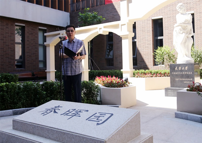 9月9日,“春晖园”落成剪彩仪式在天津大学北洋园校区外国语言与文学学院举行,天津大学党委书记李家俊、1962-1967英语师资班校友、校友总会基金处处长潘峰、文学院党委书记马小宝、文学院院长李旭以及师生代表五十余人参加了活动。