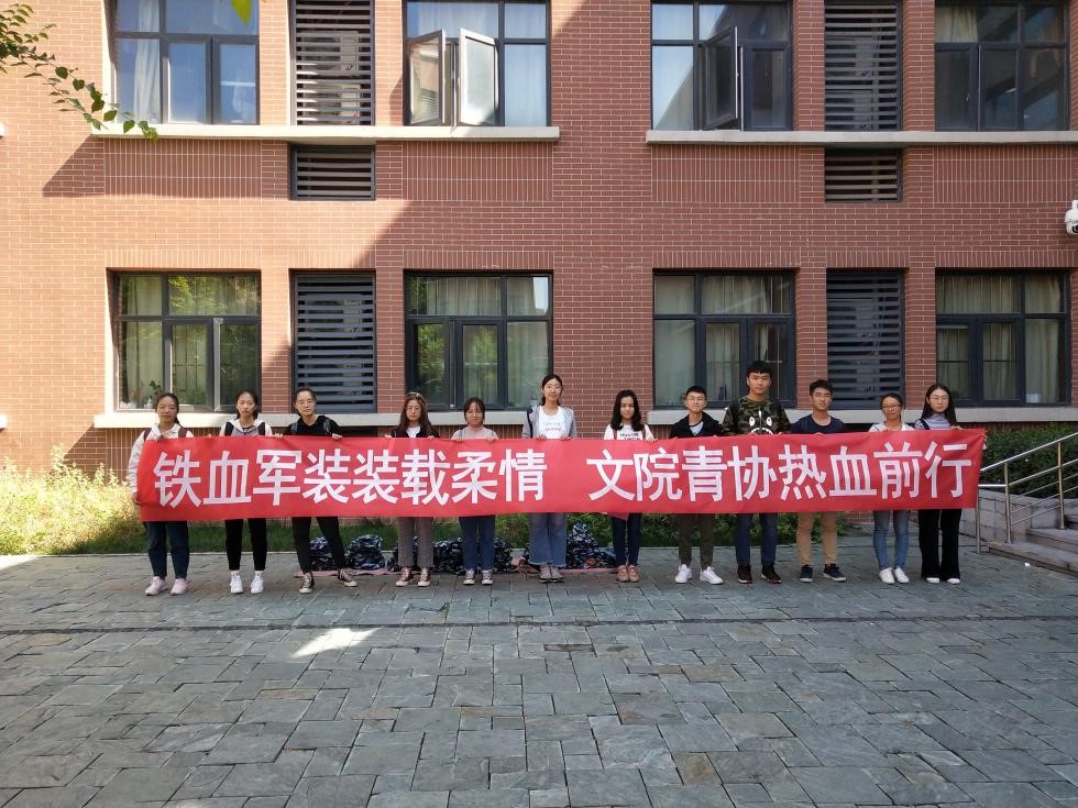 9月28日,天津大学外国语言与文学学院青年志愿者协会(以下简称“文学院青协”)“铁血军装装载柔情,文院青协热血前行”活动在天津大学北洋园校区顺利举办。来自文学院青协的同学们与文学院军训参训学员一起参与了此次活动。