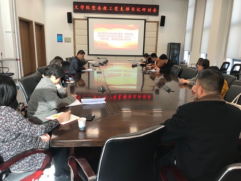 集体学习《中国共产党支部工作条例(试行)》及“对标争先”相关文件后,各支部书记做了汇报交流。大学英语教学一部党支部书记刘蕾介绍了支部活动情况,克服了一些困难,大家收获很多;大学英语教学二部党支部书记李景琦表示,对标工作条例发现自己之前的工作有的不到位,以此作为工作指导将促进支部工作更加规范;研究生外语教学部党支部书记付晓燕希望学院对青年教师更多支持;中文系党支部书记魏静表示支部不仅要服务教师还有其政治性;冯骥才文学艺术研究院党支部副书记张倩介绍了支部的特色活动,认为支部学习形式还需进一步创新;学生党建指导教师高羚表示,学生党支部支委的流动性较大,毕业生党员参与支部活动困难较多,要加强对新支委的培训,开展形式多样的学习活动。