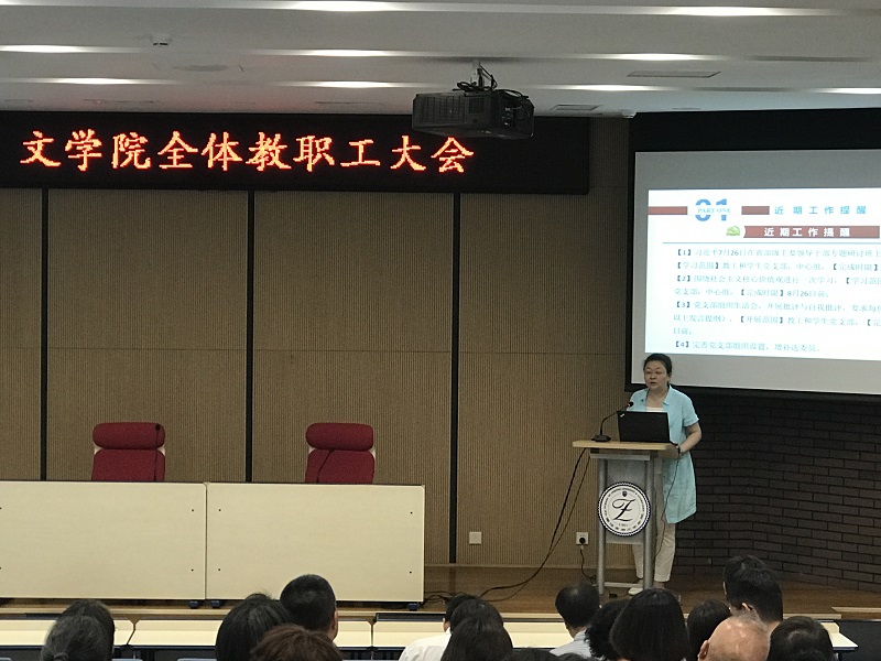 陈大中安排了新学期教学工作,要求任课教师从教材、讲义、备课等方面做好新学期上课的一切准备工作,切实提高教学质量;通报了关于整改学科建设和人才培养中马克思主义指导地位严重边缘化问题的专项工作方案,要牢固树立马克思主义在工作中的指导地位;布置了教学评估筹备与教学改革事宜,要修订培养计划和教学大纲,做好配套改革和推进工作。王立松向全体教职工讲解了人事、科研、财务、安全等方面的制度规定:他分析了2017年新修订的《外国语言与文学学院教师职务任职资格评审办法》,对加强师资队伍建设提出了要求和建议;鼓励大家积极申报科研项目、发表论文、撰写著作,营造浓厚的科研氛围,提高学术水平;讲解了《天津大学劳务酬金发放管理暂行办法》《外国语言与文学学院财务管理办法》,教职工要保证财务工作科学规范、廉洁高效;安全方面,王立松表示,各办公室张贴了《外国语言与文学学院防火安全条例》,要加强安全教育,防患于未然。
