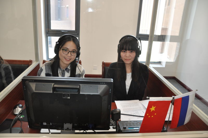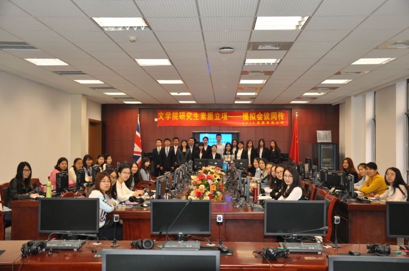 4月22日上午9点,天津大学外国语言与文学学院2015级翻译硕士班在33教学楼同声传译实验室开展研究生素质立项系列活动模拟会议同传。