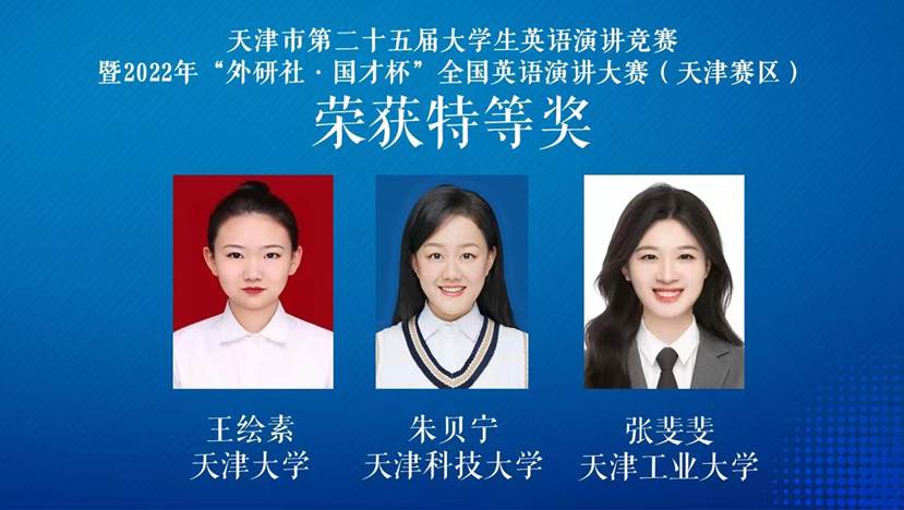 在刚刚结束的天津市第二十五届大学生英语演讲竞赛暨2022年“外研社·国才杯”全国英语演讲大赛天津赛区比赛中,我校学子厚积薄发,挥斥方遒,分别斩获特等奖、一等奖、二等奖和三等奖各一项,取得我校历史最好成绩。外国语学院江滨老师指导的英语专业2019级本科生王绘素获得特等奖第一名,将在今年12月代表天津市参加全国总决赛。