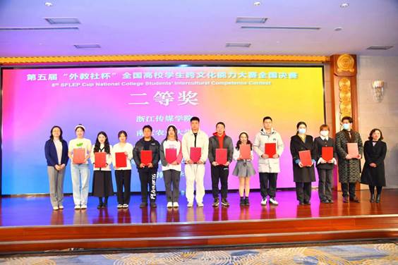 第五届“外教社杯”全国高校学生跨文化能力大赛全国决赛总决赛于2023年2月26日圆满落幕。由天津大学外国语学院的王绘素、人文艺术学院的吴佳穗和张婧同学组成的天津大学代表队在决赛中表现出色,最终荣获全国二等奖,外国语学院刘蕾、肖振凤和多津玲三位教师组成的指导团队获得二等奖优秀指导教师奖。