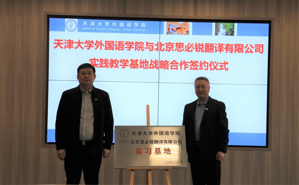 随后,王立松和许立群分别代表外国语学院与北京思必锐翻译有限公司举行了签约和授牌仪式。