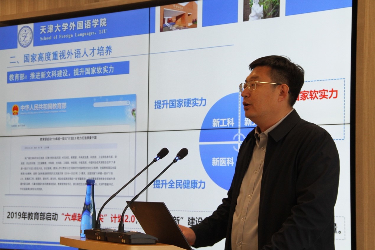 为深入学习贯彻党的二十大关于加强国际传播能力建设、增强中华文明传播力影响力要求,加深外国语学院学生专业认识,明确时代使命,4月7日下午,外国语学院王立松教授面向2022级全体本科生做了题为“锚定‘外语+’成长路径,新时代外语人才大有可为”的主题报告,共话新时代外语人才使命道路。