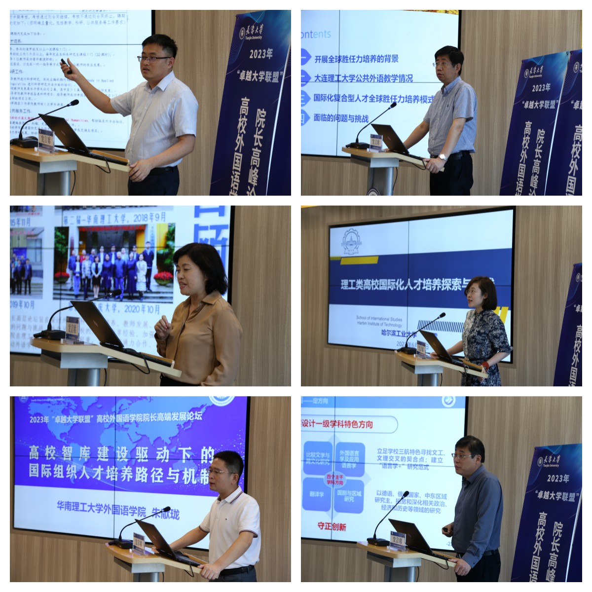 论坛主题交流阶段,来自“卓越大学联盟”各高校的院长们就大学英语改革、外语专业建设、人才培养、学科建设、师资队伍建设以及外语学科面临的机遇与挑战等热点问题进行探讨。