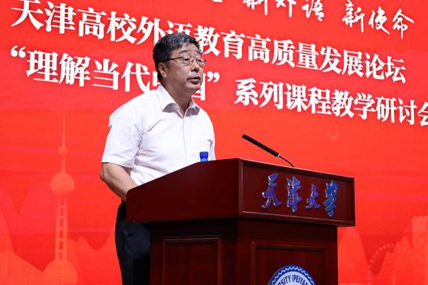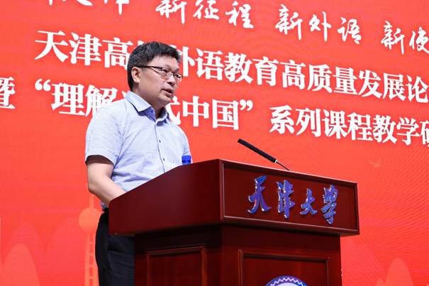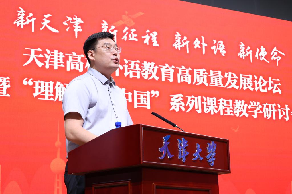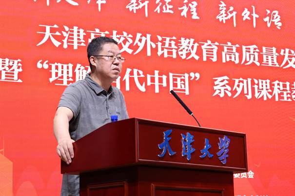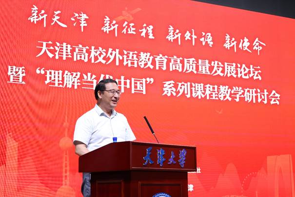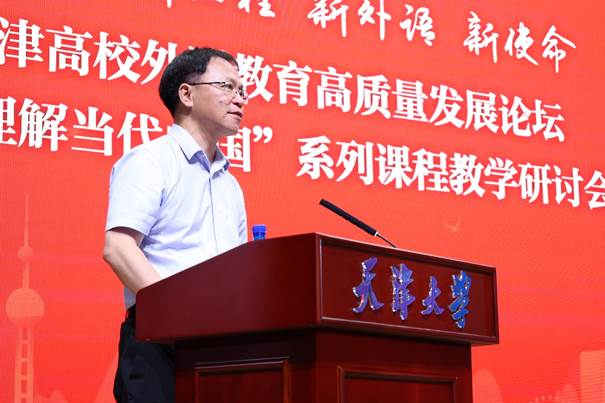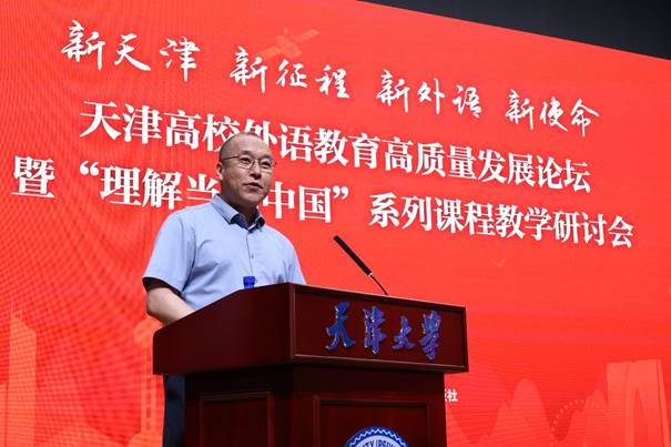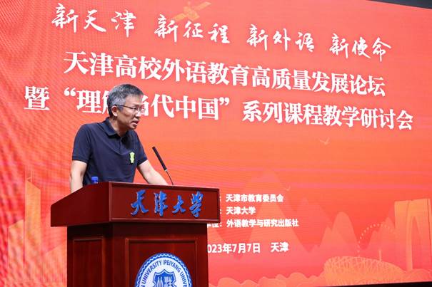 7月7日,2023年天津高校外语教育高质量发展论坛暨“理解当代中国”系列课程教学研讨会在天津大学召开。本次会议由教育部高教司指导、天津市教委主办、外研社协办,天津大学承办。会议以“新天津 新征程 新外语 新使命”为主题,旨在贯彻落实党的二十大精神,响应教育强国号召,贯彻“三进”工作部署,帮助我市高校外语教师更加准确系统把握《理解当代中国》系列教材主要精神和重点内容,助力外语类专业知识体系、课程体系、教材体系创新,以外语教育高质量发展夯实国家富强之基,为全面推进中华民族伟大复兴提供人才支撑。