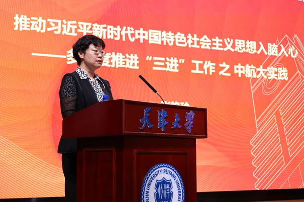 中国民航大学张艳玲教授以“推动习近平新时代中国特色社会主义思想入脑入心——多维度推进‘三进’工作之中航大实践”为题,介绍了中国民航大学多维度推进“三进”工作的实践经验,重点介绍了系列教材和著作使用情况、相关专业及课程建设情况,以及开展对外话语创新研究情况。