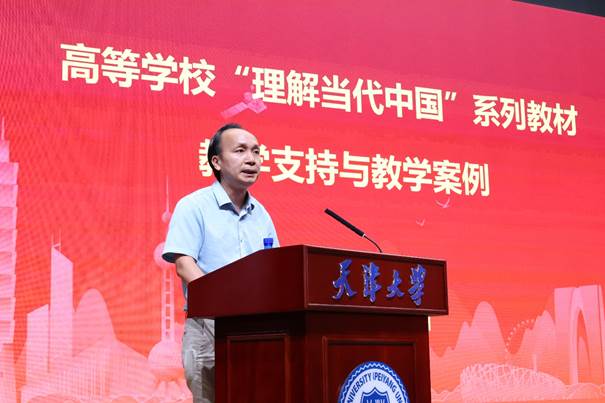 教学支持环节由天津城建大学范国文教授主持,外语教学与研究出版社高等英语教育出版分社副社长冯涛从教材理解、资源体系、评价体系、实践体系、教师发展五个层面介绍了《理解当代中国》系列教材教学支持与教学案例。