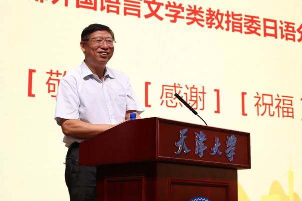 教育部高等教育司二级巡视员、人文社科教育处处长张庆国,天津市教育委员会高等教育处处长徐震,教育部高等学校外国语言文学类专业教学指导委员会主任委员、《理解当代中国》英语系列教材总主编、北京外国语大学副校长孙有中,教育部高等学校外国语言文学类专业教学指导委员会副主任委员、日语专业教学指导分委会主任委员、天津外国语大学修刚,天津大学党委常委、副校长马新宾,外语教学与研究出版社党委副书记、副总编辑常小玲,以及各高校主管副校长,教务处、外国语学院(公共外语部)、国际教育学院主要负责人、“理解当代中国”系列课程任课教师等近三百人参加会议。开幕式由天津大学外国语学院王立松教授主持。