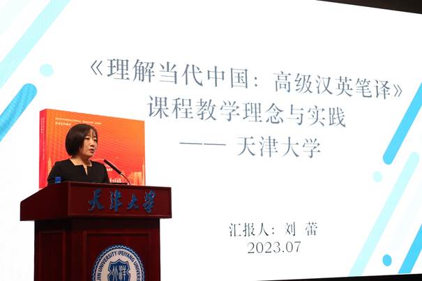 中央财经大学黄振华、天津外国语大学周薇、天津大学刘蕾三位老师分别就《理解当代中国:英语读写教程》《理解当代中国:汉英翻译教程》《理解当代中国:高级汉英笔译》从教学理念、课程设计、教学实践等方面为与会教师分享经验,促进广大教师的交流学习,从而更准确的把握《理解当代中国》系列教材的重点内容,进一步提升课程实效。