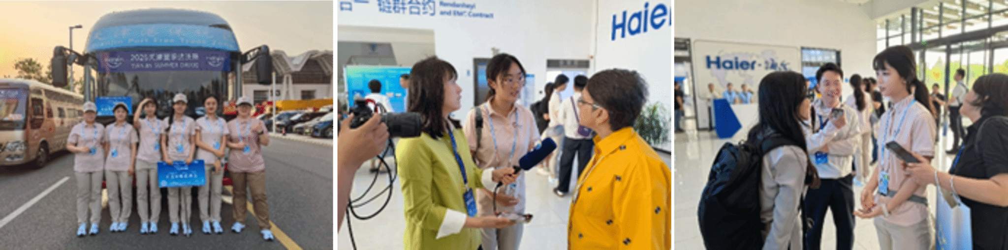 2025年6月24日至26日,天津大学外国语学院40名志愿者在李玮琦、高宇璐老师带队下,于2025夏季达沃斯论坛期间承担工业游、文化游六条线路志愿服务。翻译教育中心主任殷世宇提供专业语言指导,志愿者以精准双语服务、跨文化沟通能力,助力嘉宾深度体验天津科技实力与文化魅力。此次志愿服务中,外国语学院学子以专业素养和青春活力,成为达沃斯论坛上一道亮丽的风景线,他们用实际行动践行了“奉献、友爱、互助、进步”的志愿精神,也为天津的国际化形象增添了光彩。