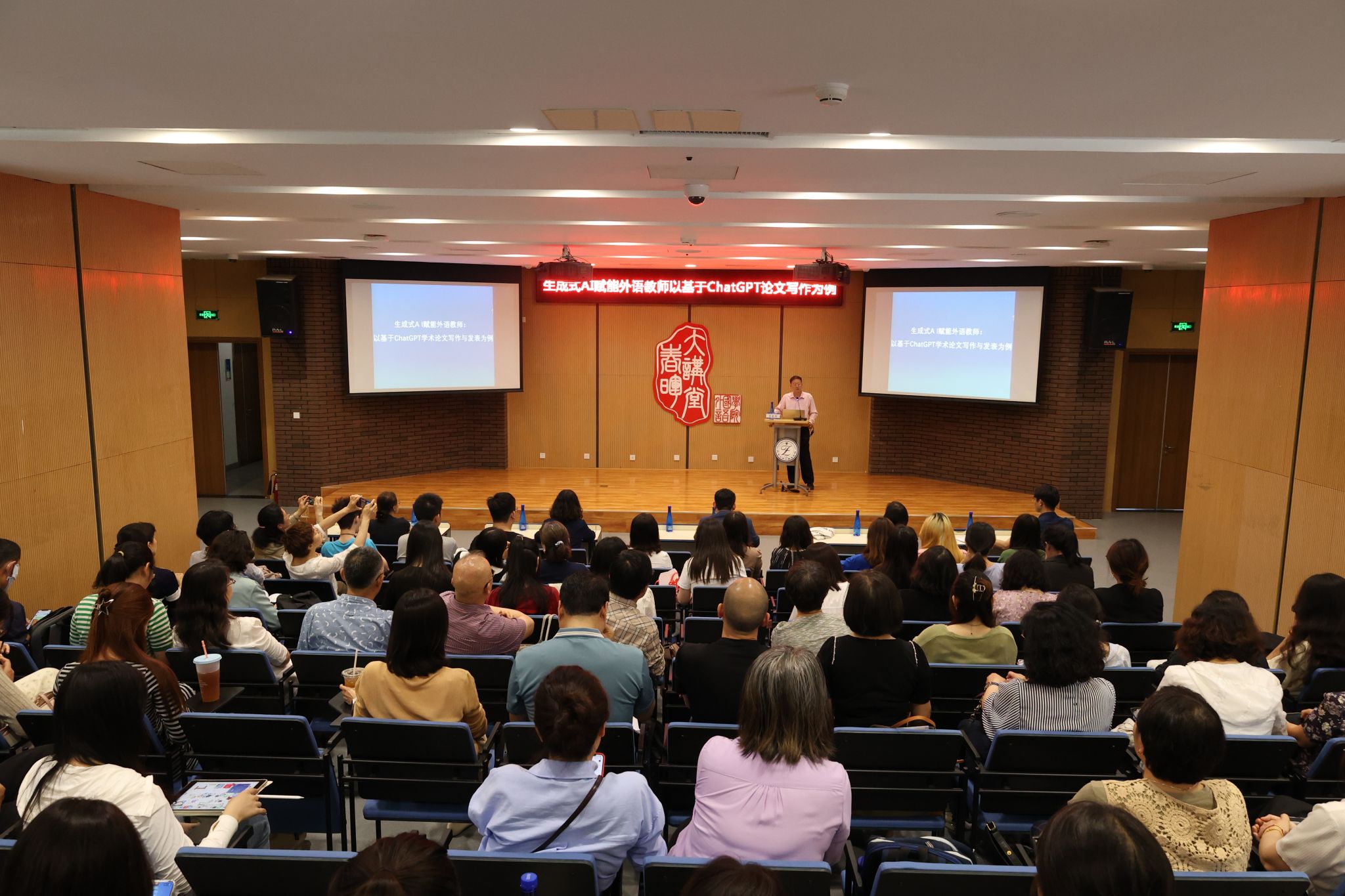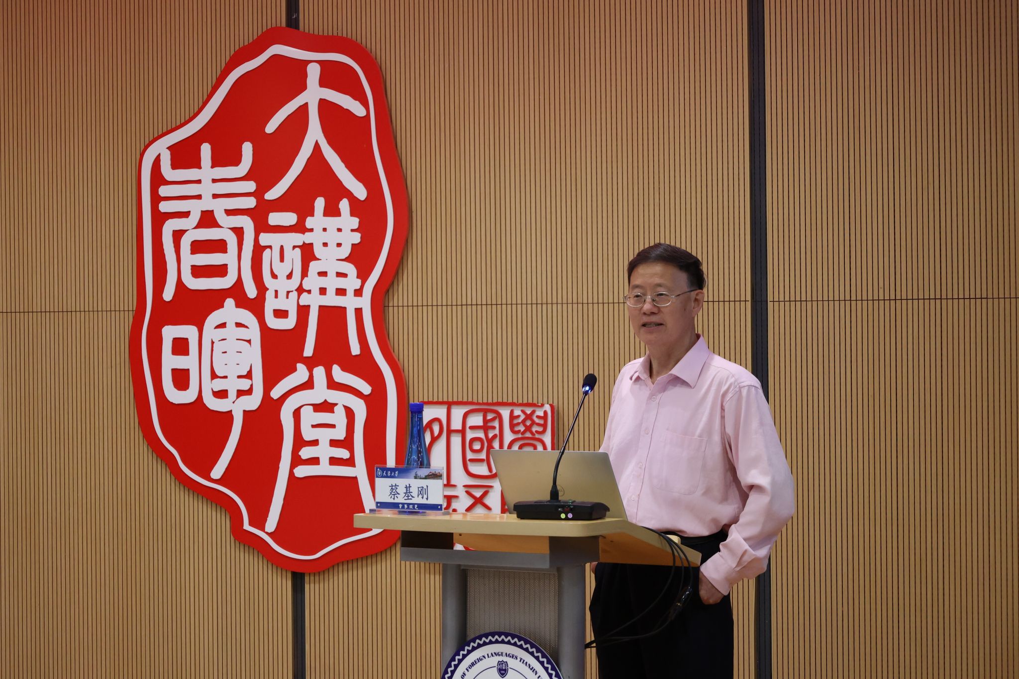 This Friday afternoon, Cai Jigang, a professor from the College of Foreign Languages and Literature of Fudan University was invited to the Chunhui Lecture of the School of Foreign Languages. His lecture was well-received, drawing an audience of over 100 faculty members, core teachers, and students pursuing foreign language studies at the undergraduate and graduate levels.