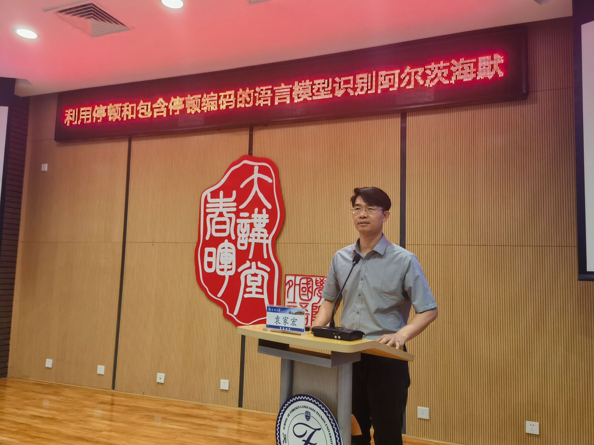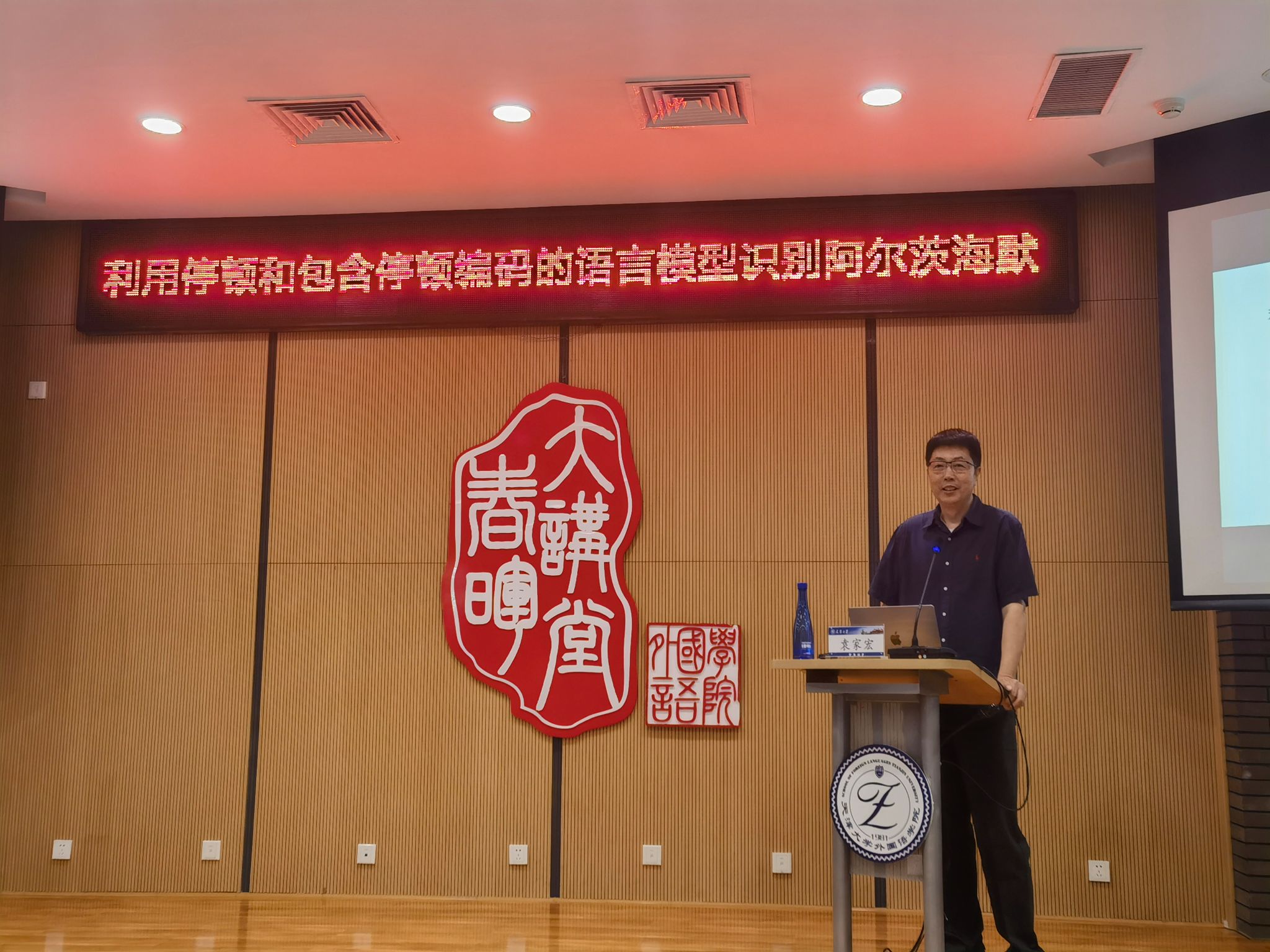 In a humorous and plain language, Prof Yuan Jiahong introduced the markedly differences in speech pause patterns between Alzheimer's patients and healthy individuals. The lecture primarily delved into utilizing these pause characteristics within the framework of Transformer-based language models to aid in the identification of Alzheimer's disease. The findings of this research are poised to substantially enhance the accuracy of automatic Alzheimer's disease identification through spoken language.