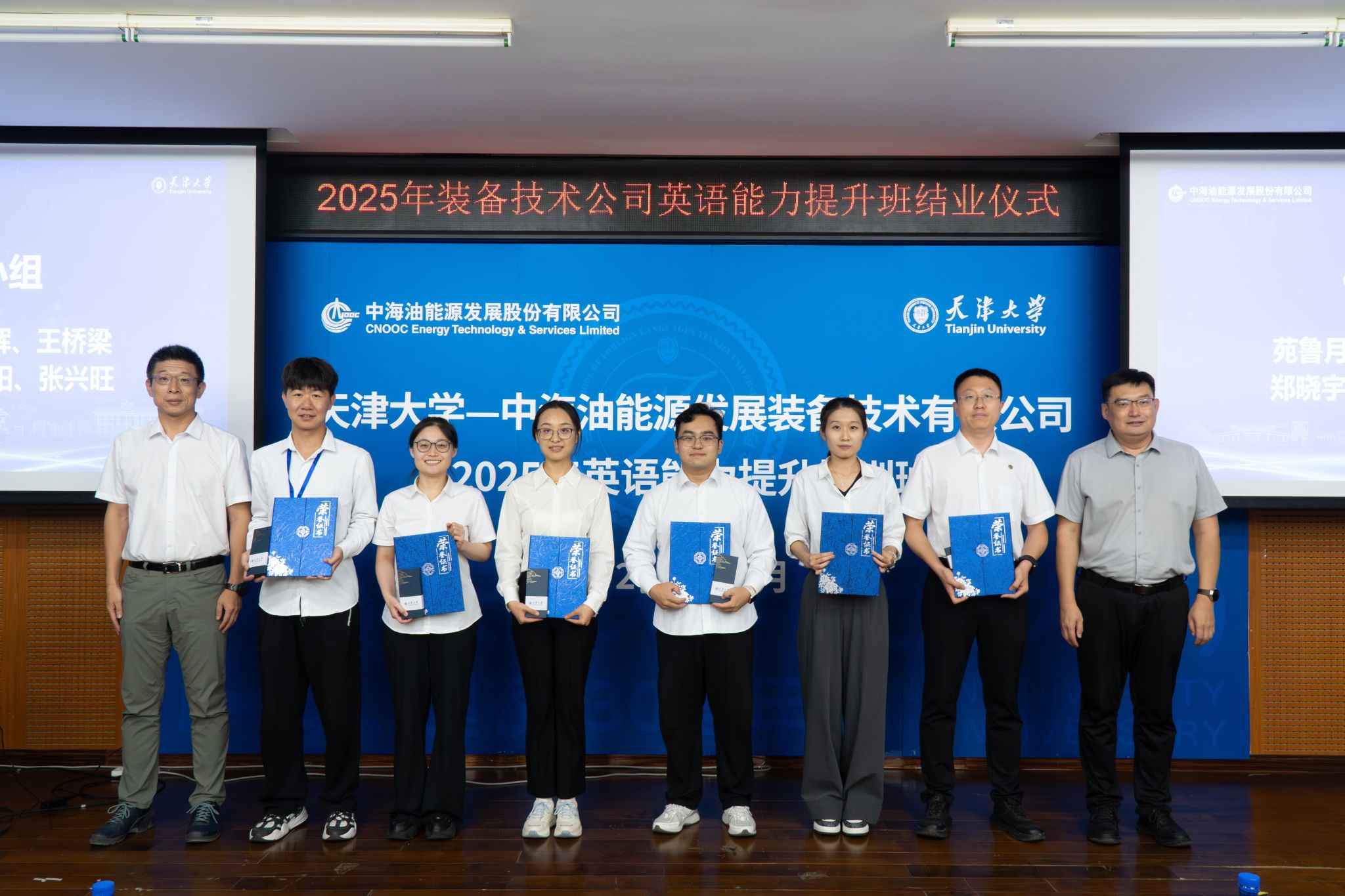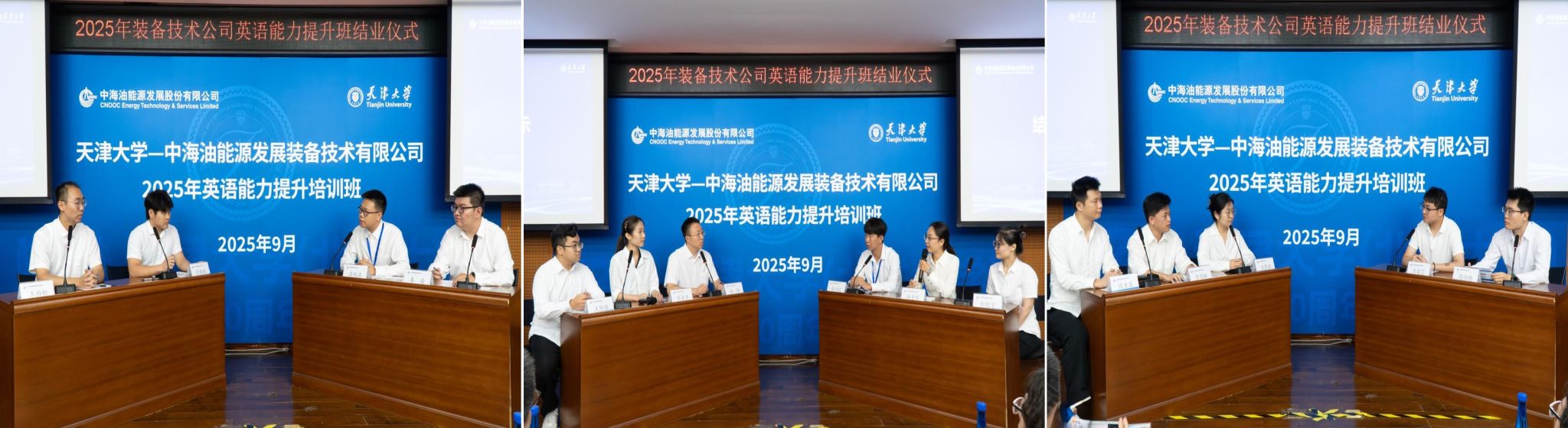 2025年9月26日,中海油能源发展装备技术有限公司(以下简称“装备技术公司”)2025年英语能力提升培训班在天津大学顺利结业。本次培训自9月12日启动线上学习,9月15日-26日开展线下集中授课与模拟训练,是天津大学与装备技术公司深化校企合作、共育国际化高素质人才的重要实践。