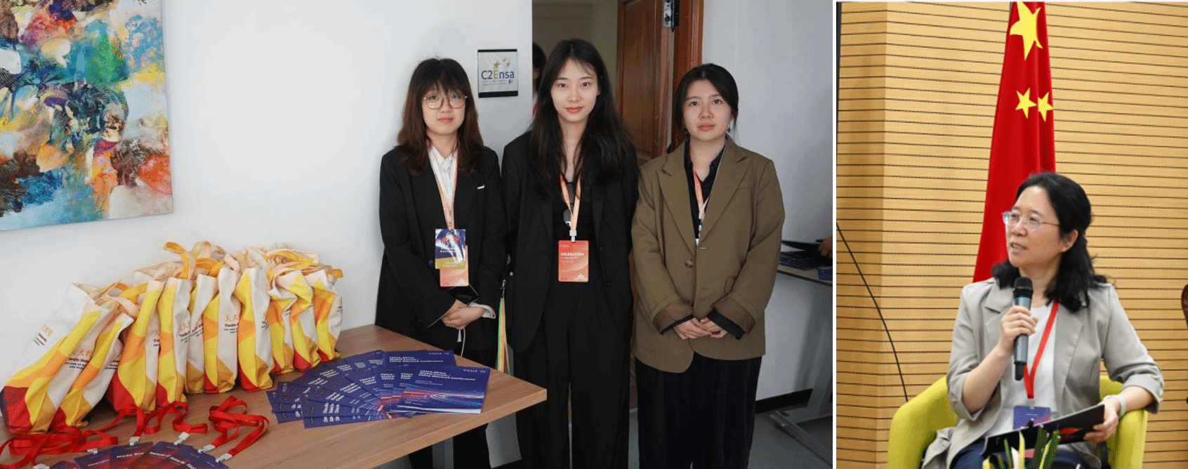 4月24日至25日,代表团师生共同参与“中摩领土治理与地方分权经验”国际会议与“人工智能领域的女性:重塑领导力”论坛。教师代表围绕语言服务与AI发展作主旨发言,学生则积极参与会议服务、资料分发、现场对接等工作,承担部分口语讲解与翻译任务,展现了良好的外语能力与专业素养。实践证明,国际会议不仅是学术交流的平台,更是学生能力提升与职业素养锤炼的课堂。