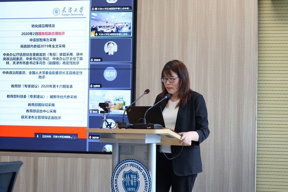 天津大学外国语学院王战教授、武玉莲副教授从申报学位点的必要性和意义、发展现状与支撑条件、学位点特色与优势、专项合格评估研判与分析、未来发展定位与目标等方面向与会专家详细汇报了区域国别学一级学科博士学位授权点的建设情况。