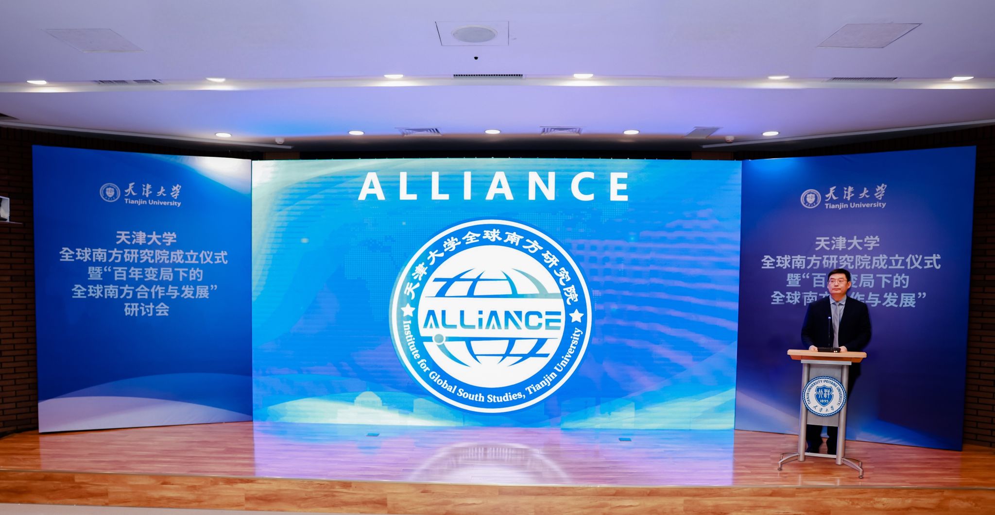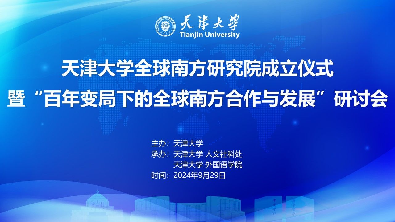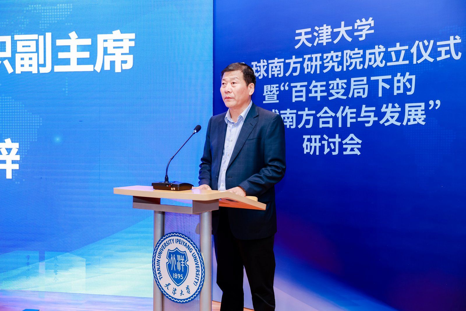2024年9月29日,天津大学全球南方研究院成立仪式暨“百年变局下的全球南方合作与发展”研讨会在北洋园校区召开。此次会议汇聚了业界内众多知名专家与学者,天津市社科联专职副主席袁世军,国务院学位委员会区域国别学学科评议组召集人、北京大学区域与国别研究院副院长翟崑,教育部国别和区域研究工作秘书处主任、北京语言大学国别和区域研究院院长罗林,高校区域国别学人才培养与学科建设联盟秘书长、中山大学区域国别研究院院长陈杰,及20余所高校外国语学院院长和相关负责人参加研讨。天津大学党委书记杨贤金出席成立仪式并致辞,党委副书记韩庆华,党委常委、统战部部长、人文社科处处长张俊艳及有关部处学院负责同志出席会议,会议由天津大学外国语学院院长王立松主持。
