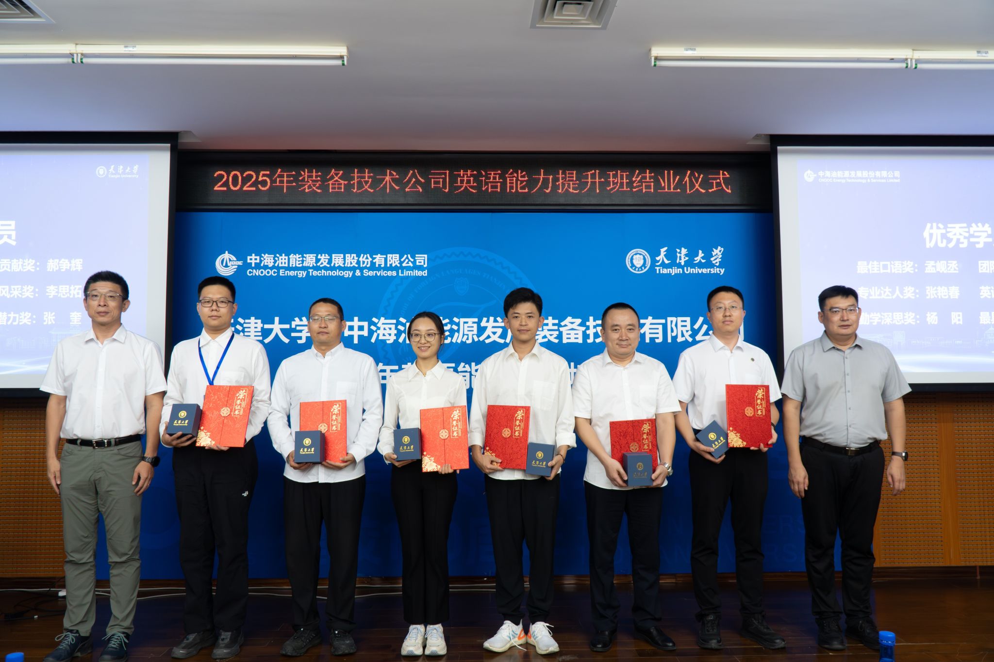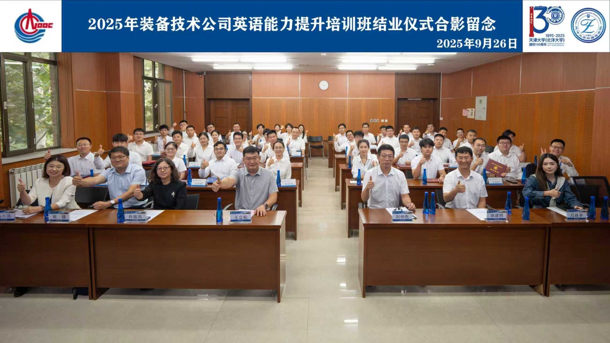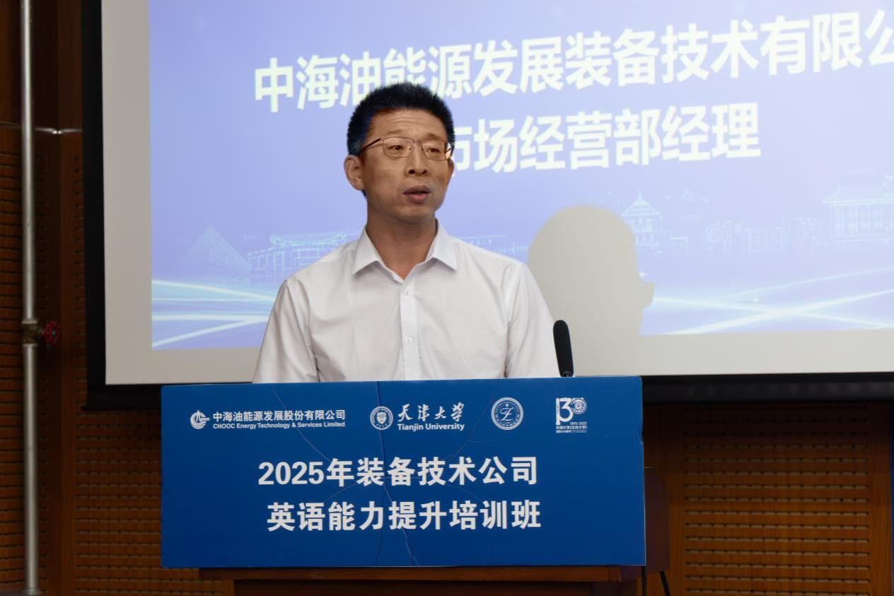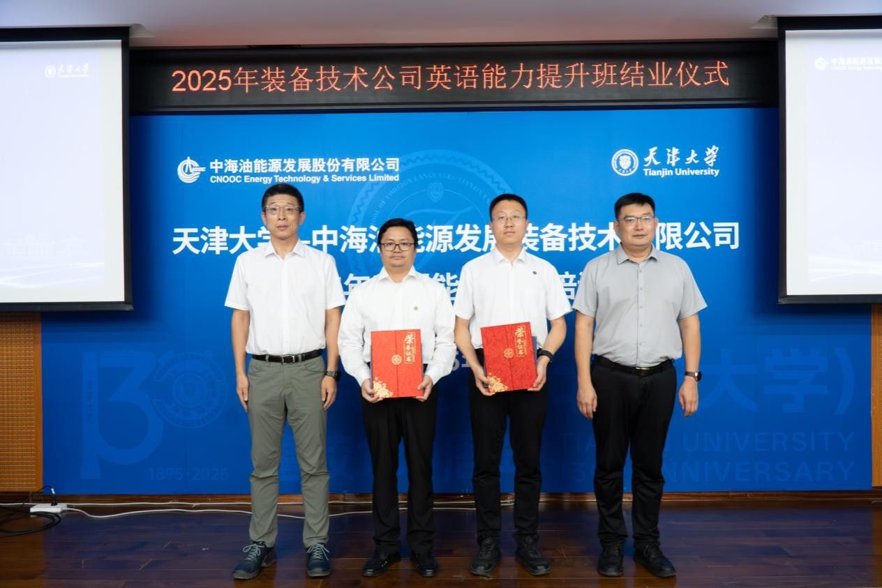 2025年9月26日,中海油能源发展装备技术有限公司(以下简称“装备技术公司”)2025年英语能力提升培训班在天津大学顺利结业。本次培训自9月12日启动线上学习,9月15日-26日开展线下集中授课与模拟训练,是天津大学与装备技术公司深化校企合作、共育国际化高素质人才的重要实践。